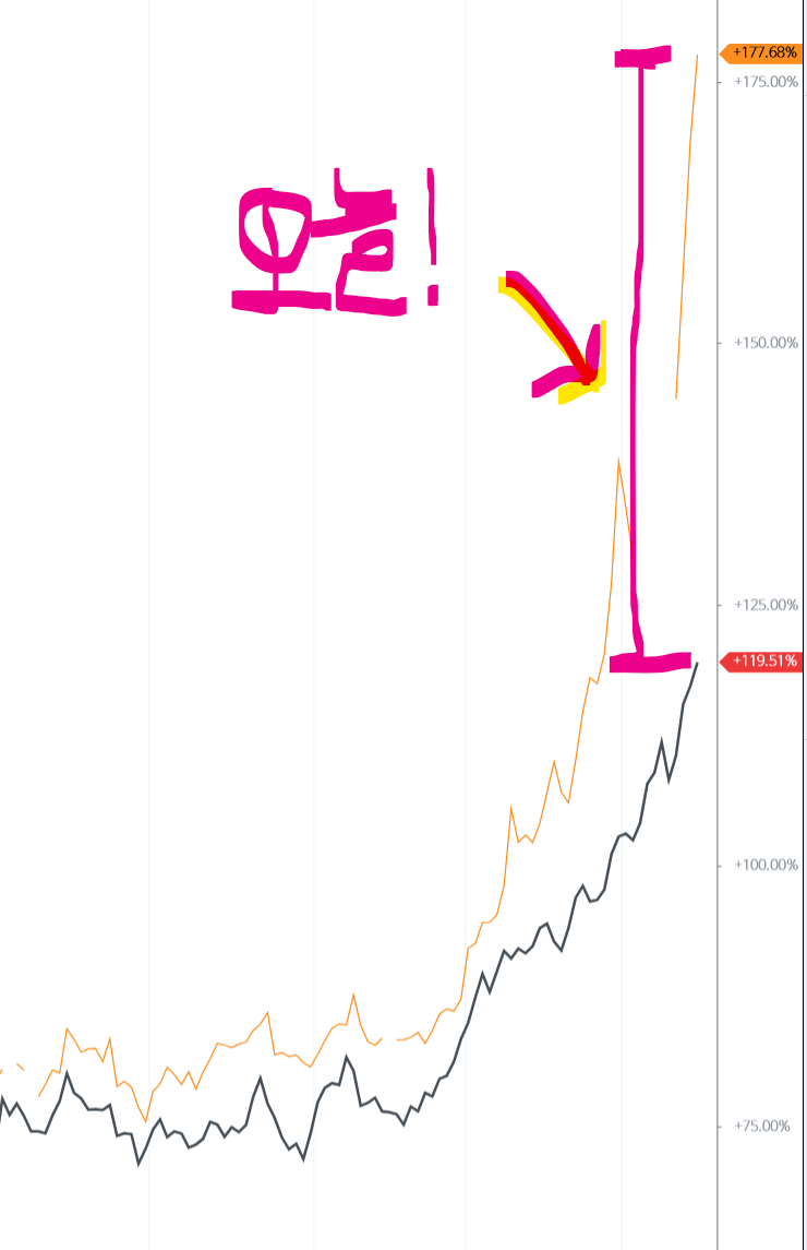 2. 둘의 가격 차이가 크게 벌어지는 구간이 존재하지만, 통상적으로 반년 내에는 다시 서로 근접하게 수렴하는 양상을 보임
